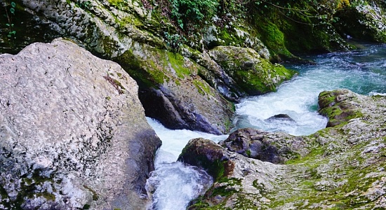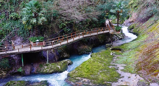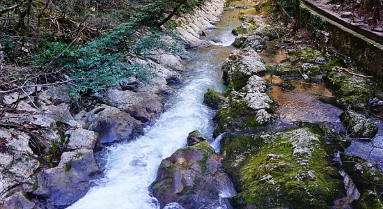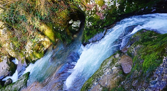 Если вы хотите побродить по ущелью горной реки с ее перекатами, маленькие водопадами, порогами, но при этом не готовы спускаться по отвесным склонам, ползать по скользким камням и переходить в брод ледяную воду, то Черниговка будет лучшем вариантом. На протяжении примерно 500 метров оборудованы дорожки, мостики, лесенки, смотровые площадки - все для безопасной прогулки. Перед вами поток горной реки и результаты его деятельности: промытые каньоны в камнях и своеобразные ванночки - если нет дождей, то вода в реке от бирюзового до изумрудного оттенков. Сохранились следы и гидроэлектростанции - каналы и водопады. Замшелые конструкции явно дают понять, что перед вами не новодел. После моста через реку тропинка уже не залита бетоном, просто выравнена - нужно быть аккуратным на скользких камнях. Зато начинается царство мха - он везде, а с веток деревьев свисает большими клоками