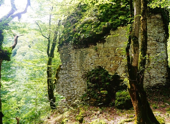 Руины стен крепости очень высокие, наверное, самые высокие из виденных в Абхазии.