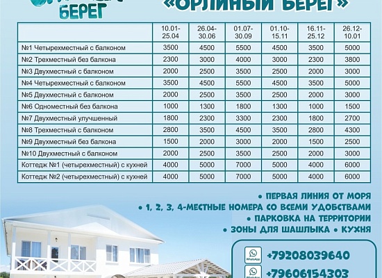 Бронь номеров от одних суток. Бронь коттеджей от 3 суток.