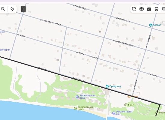 От гостевого дома "Орлиный берег" необходимо повернуть налево, пройти 1,1 километра по дороге прямо, никуда не сворачивая. Не доходя магазина "Стекляшка", поворот направо к морю.